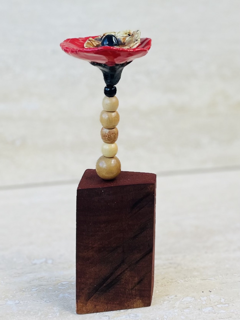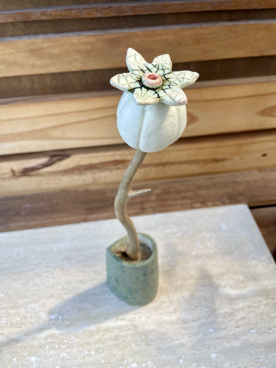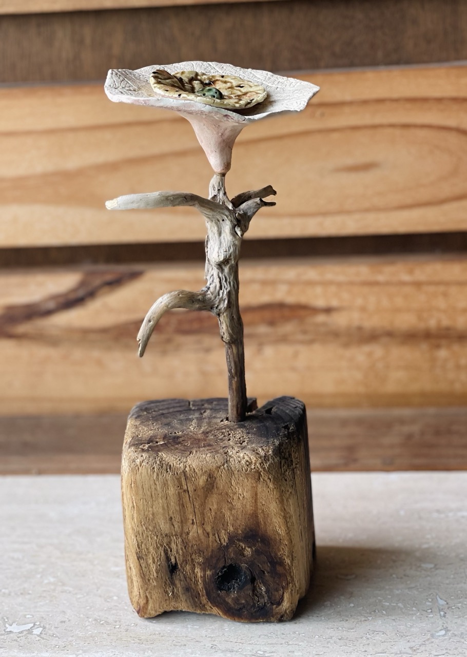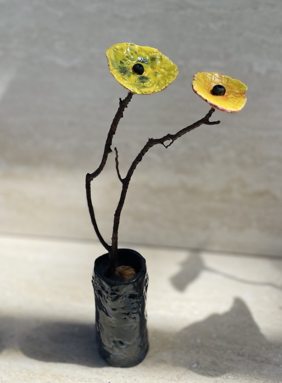 Ceramic base, reclaimed coral stems, ceramic flowers