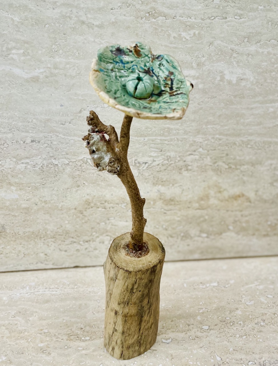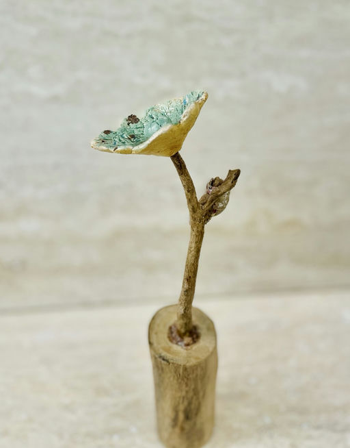 Ceramic base, reclaimed coral stems, ceramic flowers