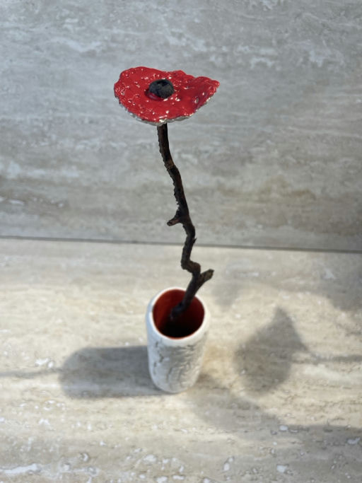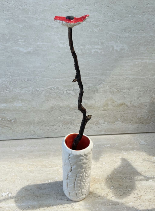 Ceramic base, reclaimed coral stems, ceramic flower