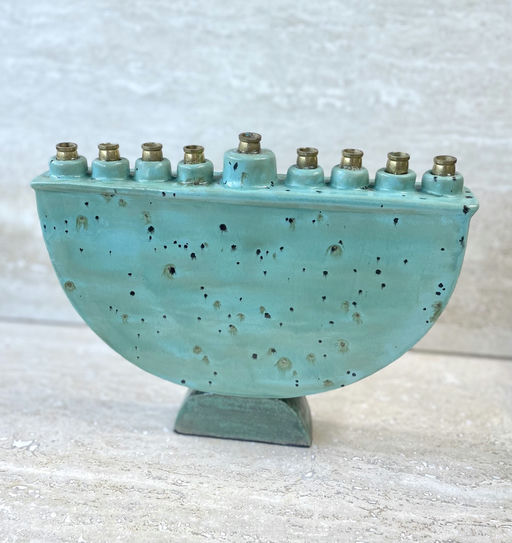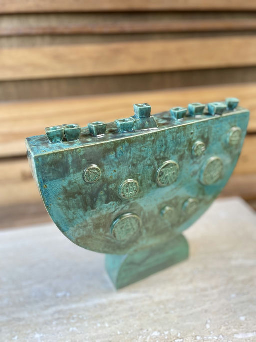 Handbuilt ceramic menorah.