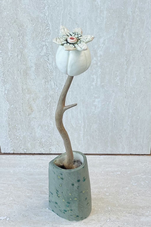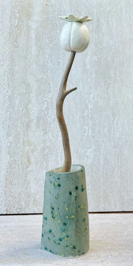 Ceramic base, reclaimed coral stems, ceramic flowers
