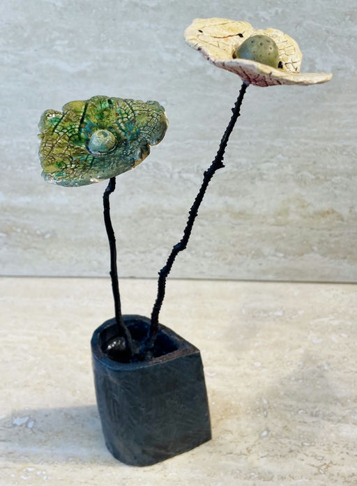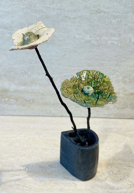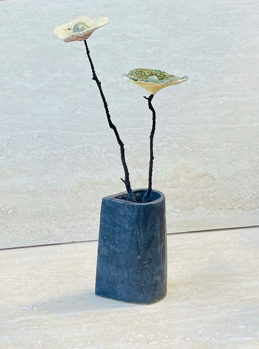 Ceramic base, reclaimed coral stems, ceramic flowers